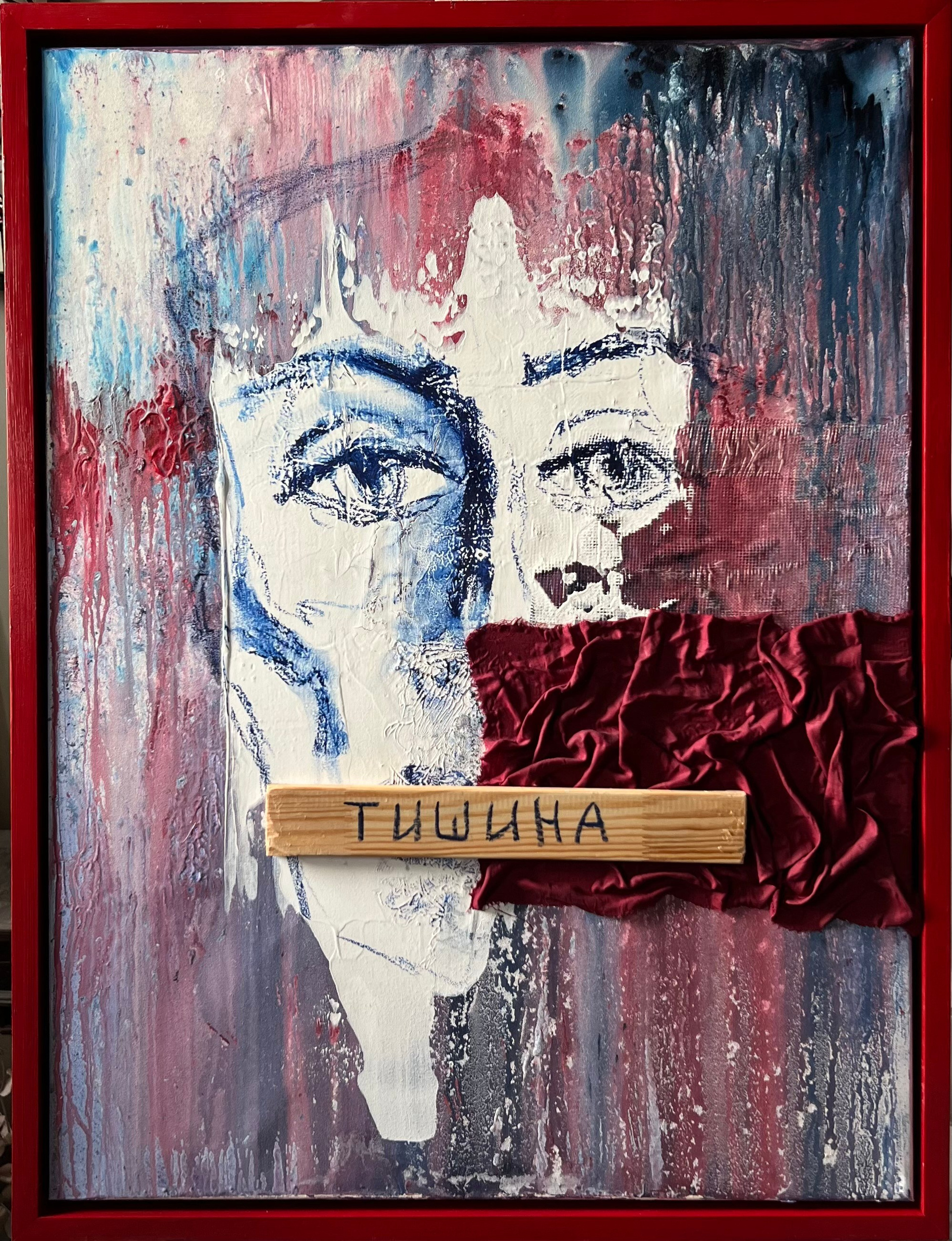 Не говори никому. Смешанная техника. Холст на подрамнике в раме 60х80 см. 2025 г. 50 000 руб