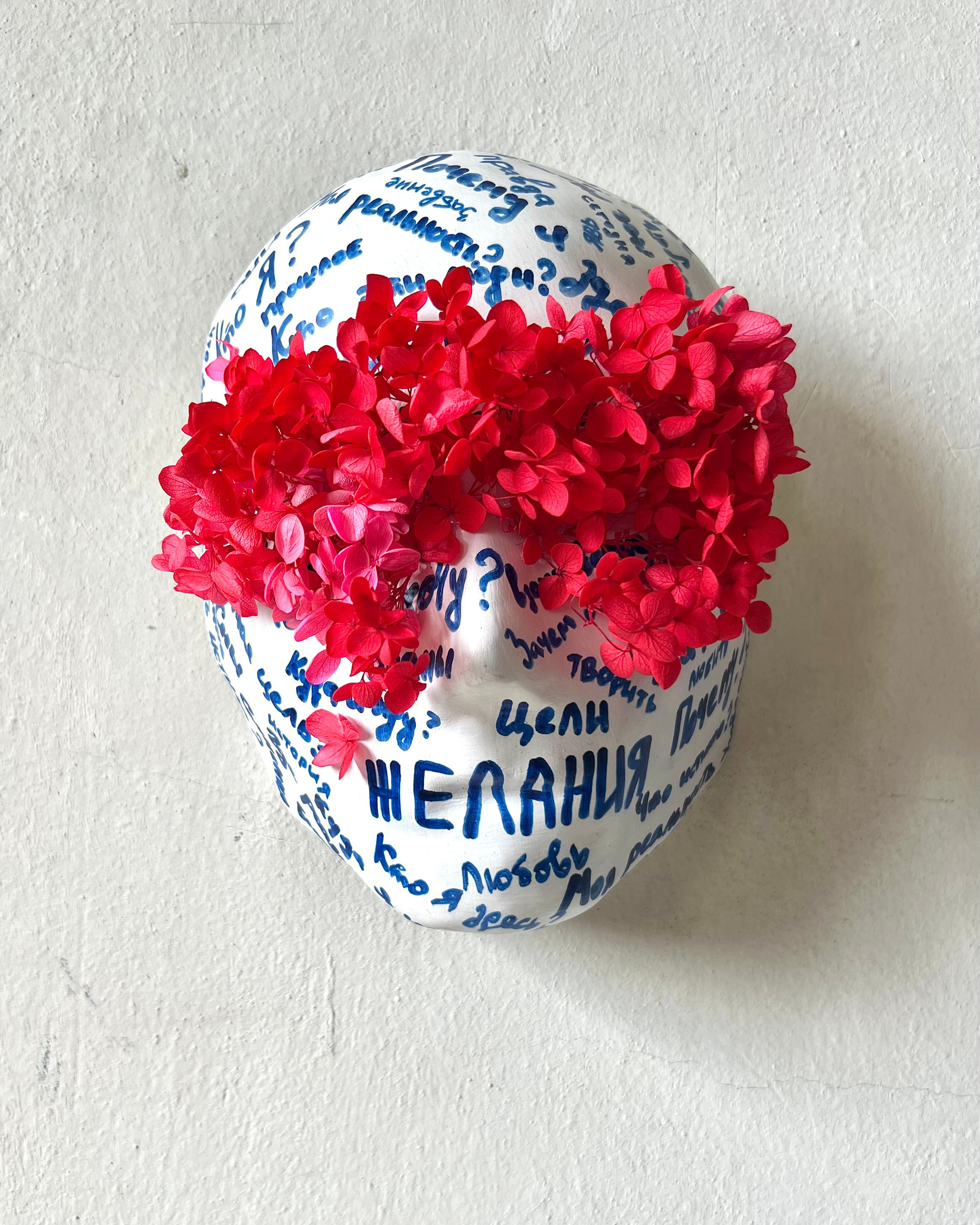 Маска. 23х19 см. гипс, акрил, стабилизированные цветы. 2024 г. 20 000 руб