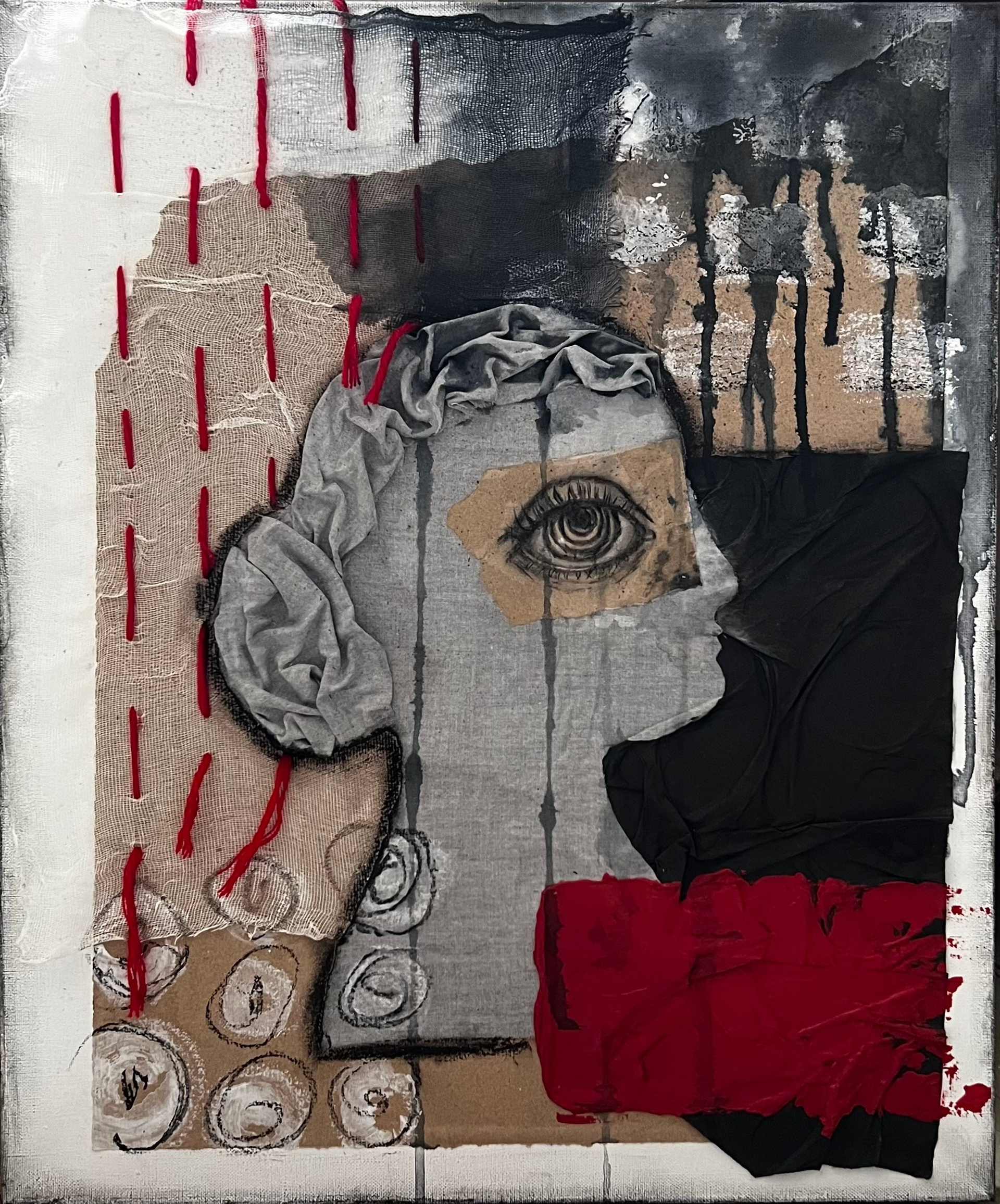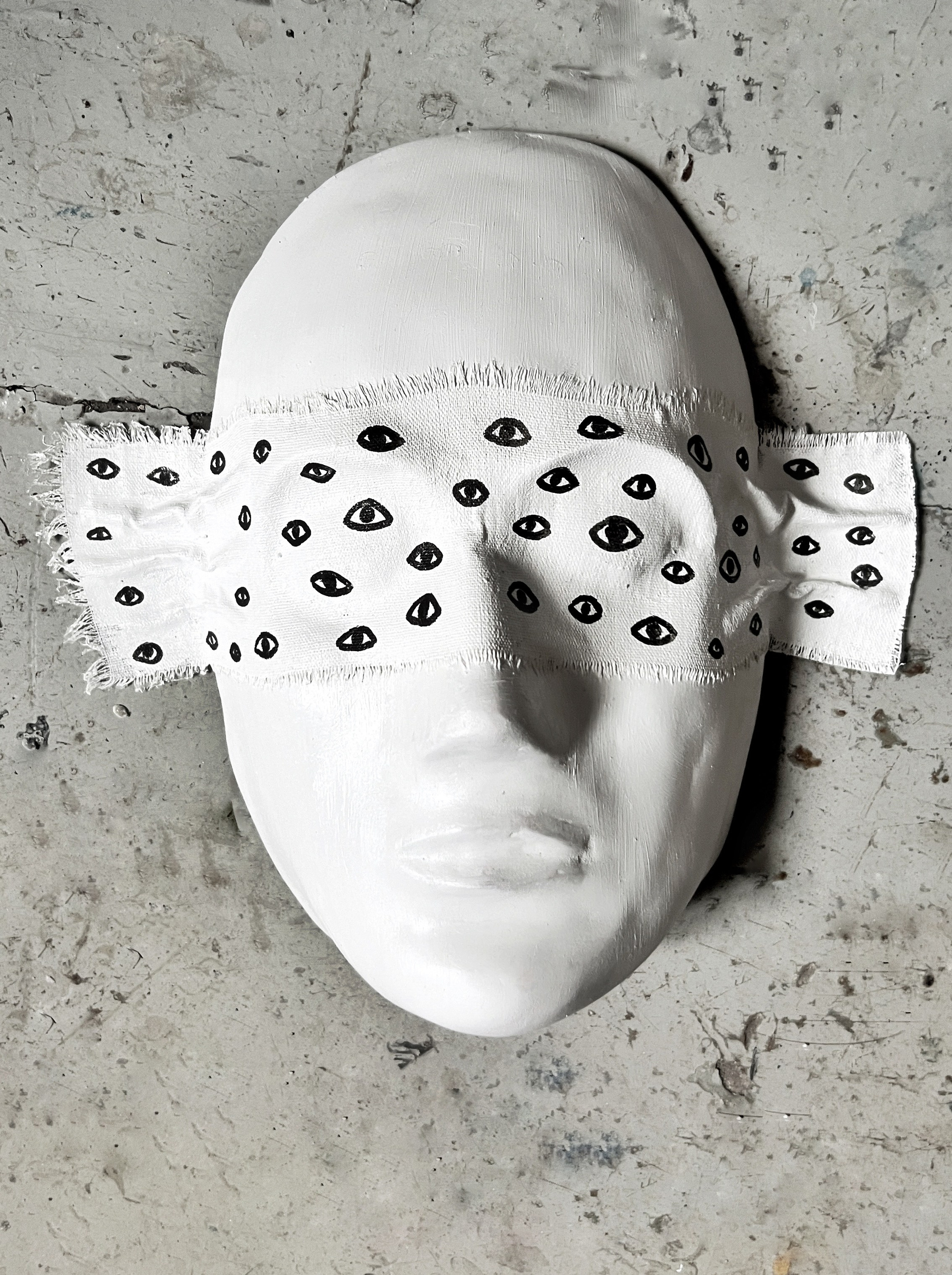 Тысячи взглядов. Гипс, акрил, ткань. 23х19 см. 2024 г. 20 000 руб