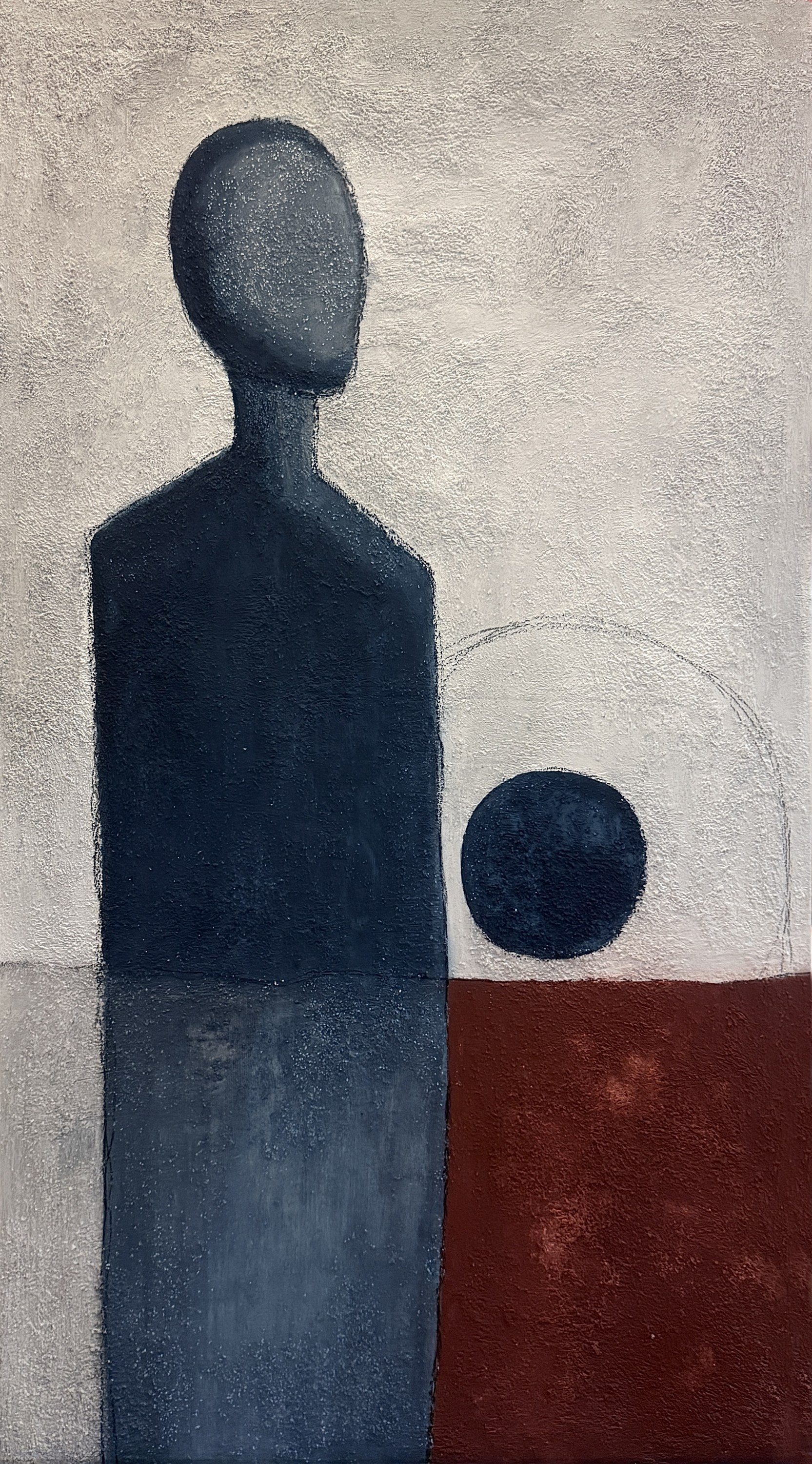 Серия фиксирует состояния, которые не успевают стать словами. Это не образы и не сюжеты, а скорее моменты внутреннего процесса, в котором формируется опора. Фигура в работах лишена индивидуальности и выступает как носитель присутствия. Рядом с ней возникают формы: замкнутые, плотные, иногда изолированные. Они создают поле напряжения — между внутренним и внешним, близостью и дистанцией, импульсом и сдерживанием.
